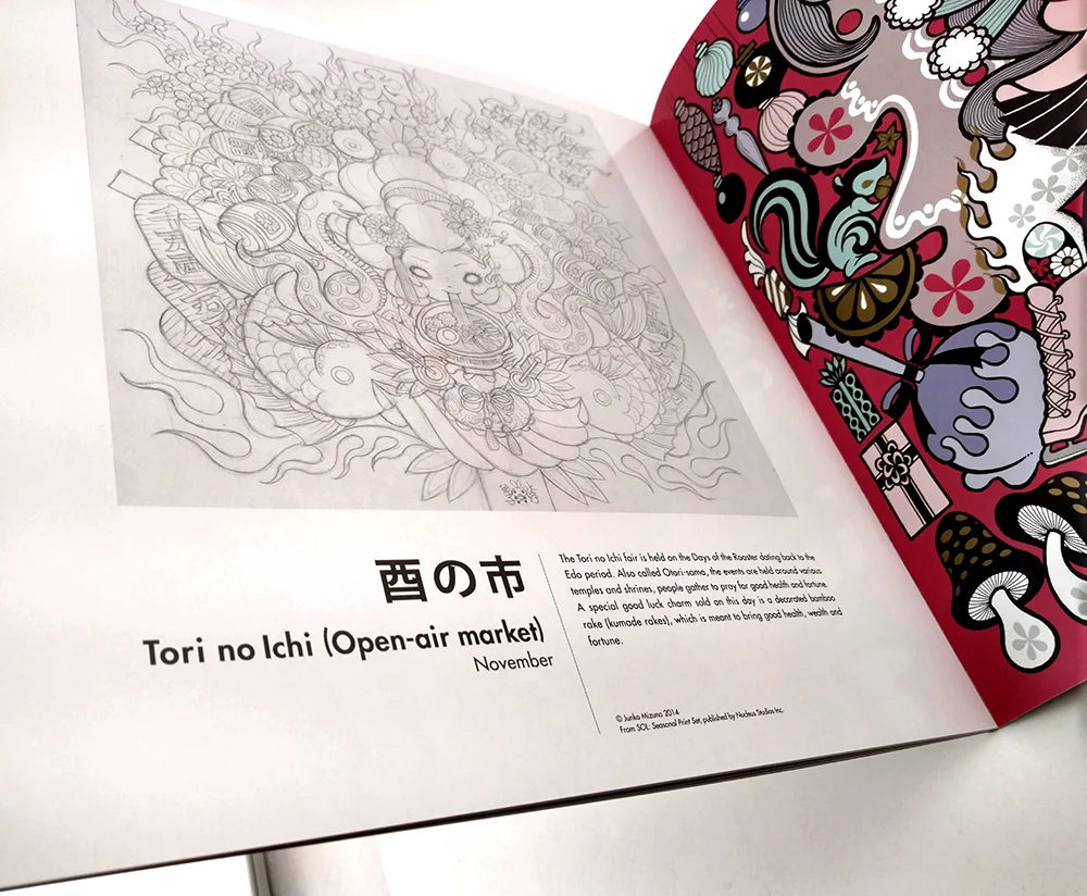 Designed for artist Junko Mizuno and Gallery Nucleus. The slipcase opens like the petals of a flower, revealing a collection of 12 removable prints.
